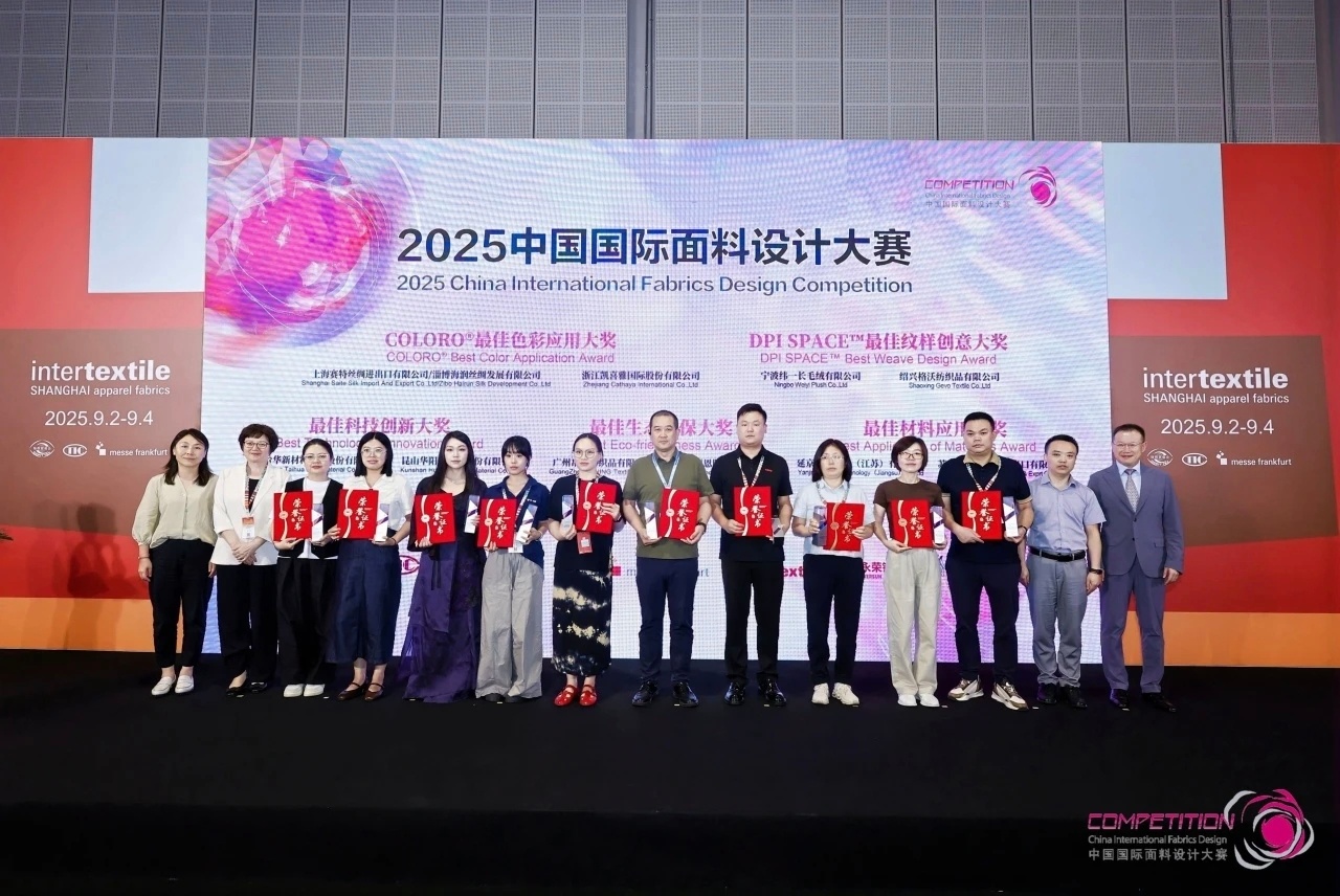 9月3日,2025中國(guó)國(guó)際面料設(shè)計(jì)大賽頒獎(jiǎng)典禮在上海舉行,臺(tái)華自主研發(fā)的“禪翼之殼”產(chǎn)品在本次大賽中獲得“最佳科技應(yīng)用大獎(jiǎng)”,研究院徐麗亞總監(jiān)代表臺(tái)華接受授...